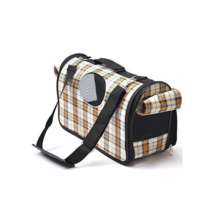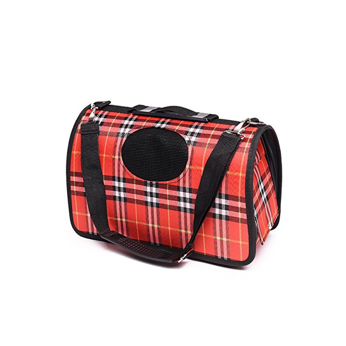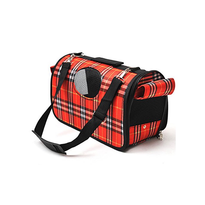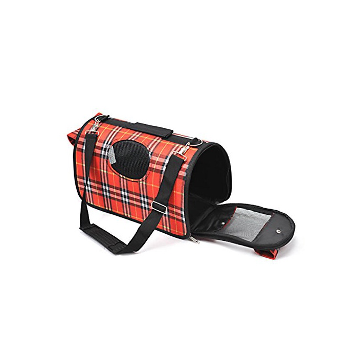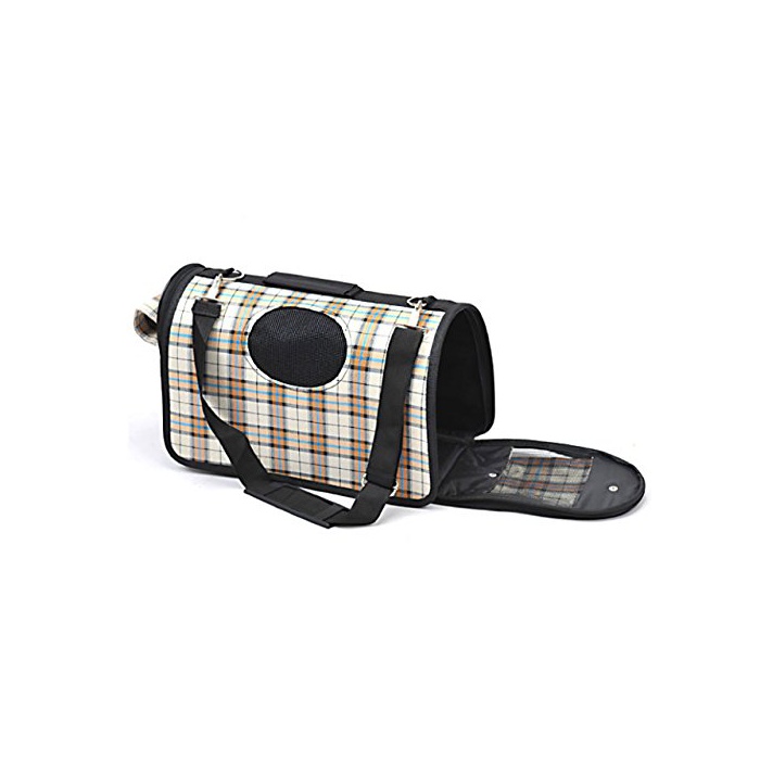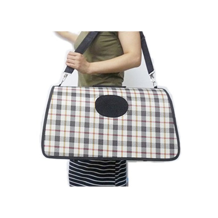 멋진 체크 무늬가 특징의 소형견,중형견용의 접이식 할 수 있는 애완동물 캐리 백입니다.