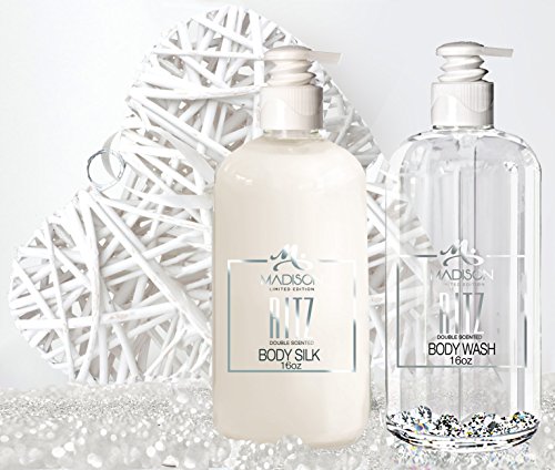 COMPLETE NOURISHMENT - This large 16 oz Ritz Limited Edition Body Silk provides a complete nourishment to your skin. Enriched with seven natural Moisturizers to offer intensive, yet lightweight hydration to body without making your skin heavy or greasy. Shea Butter, Aloe Vera, Grapeseed Oil, Vitamin E, Avocado Oil, JoJoba, Shea Butter, plus Silk Amino Acids leave your skin looking radiant and totally hydrated. A winning combination.96% Naturally Derived.