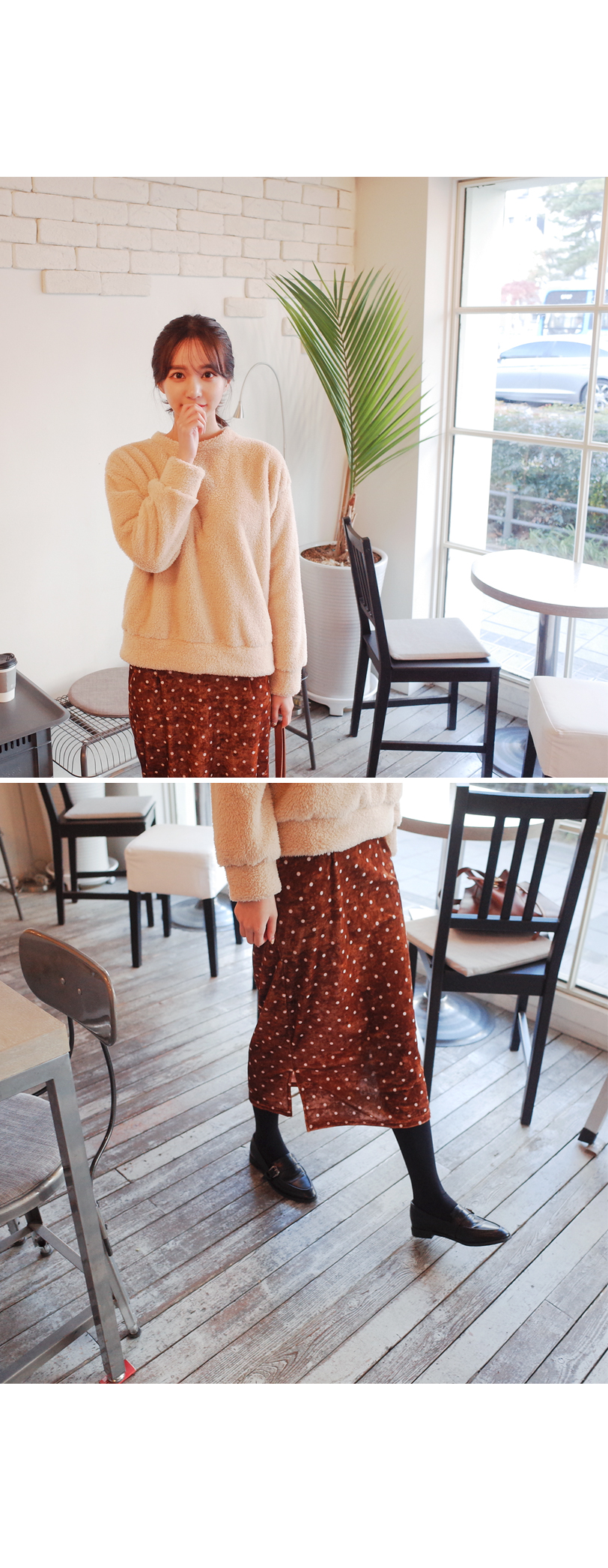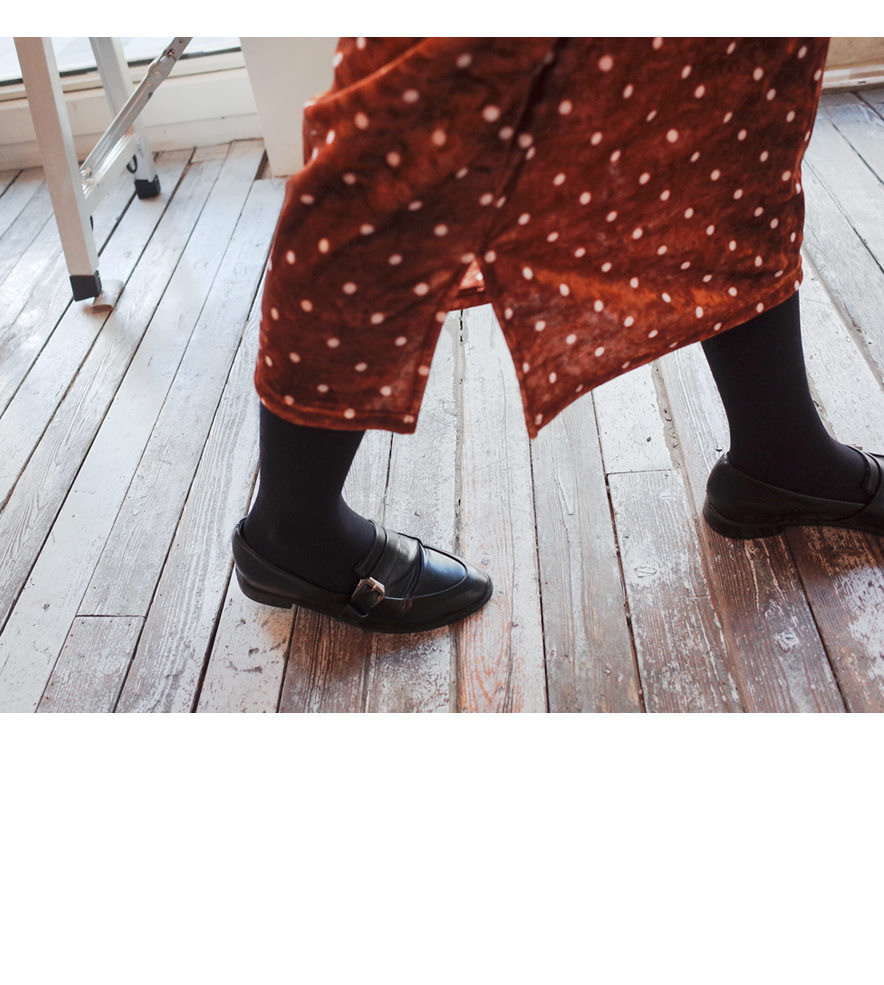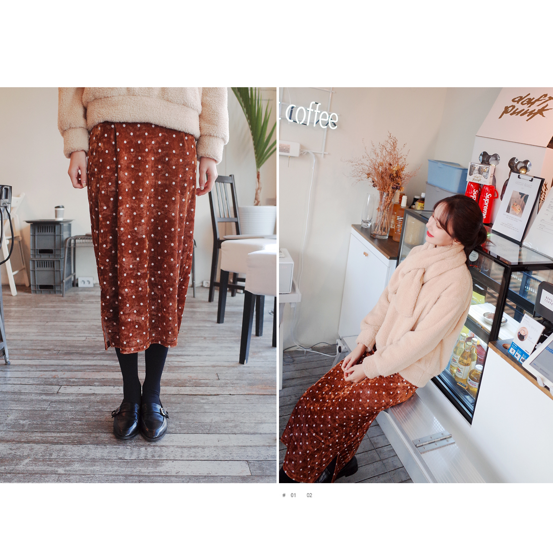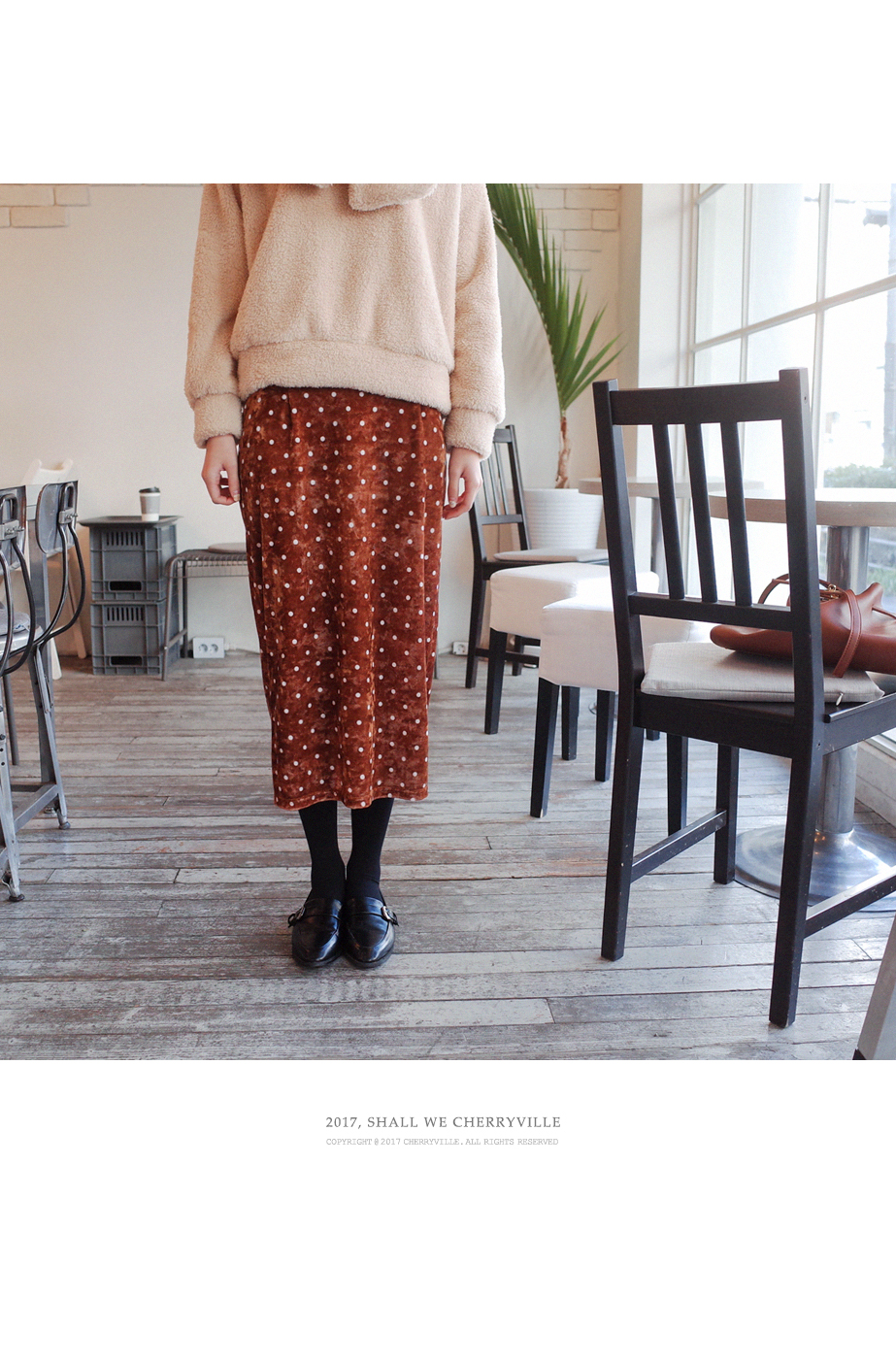 롱한 길이감에 잔잔한 도트 패턴이 사랑스러운 스커트입니다