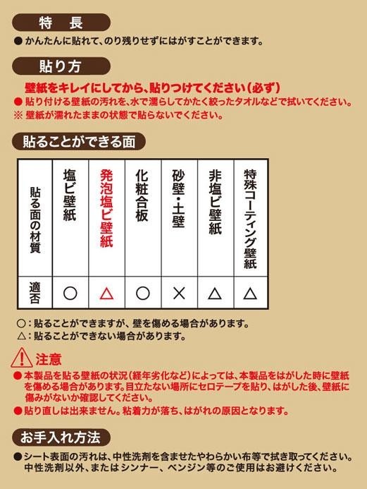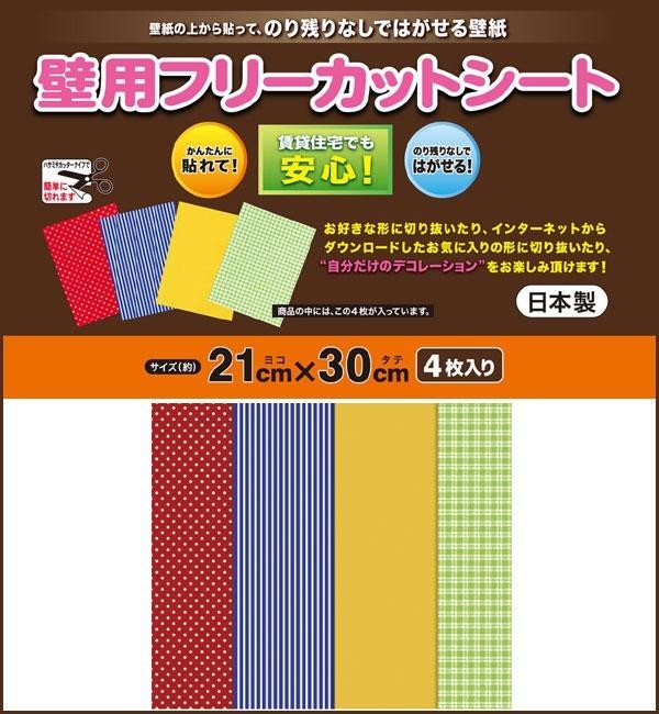 | 塩ビ壁紙の上から貼ることができる、のり残りなしではがせる日本製のフリーカットシートです。お好きな形に切り抜いたり、自分だけのデコレーションをお楽しみいただけます♪ |