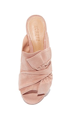Product DescriptionLarge bows accent the vamp of these suede Schutz mules. Leather insole and leather sole with rubber heel patch.0