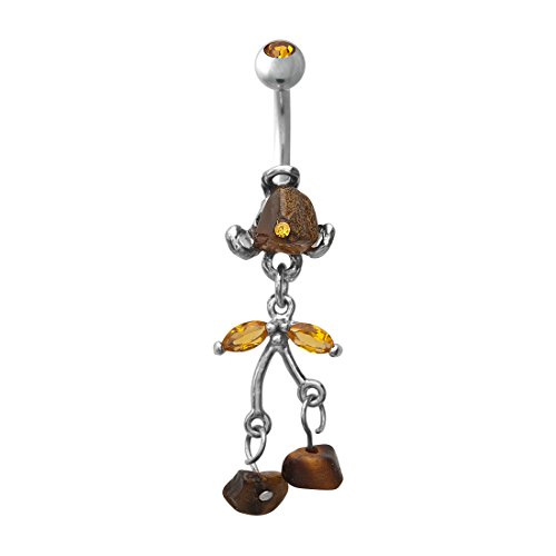 (Jewelry Brands)/Accessories/Belts Buckles/DIRECT FROM USA/14g 3/8" 316L Stainless Steel, Tiger Eye Dangle in Semi Precious stone Navel Belly Button Ring