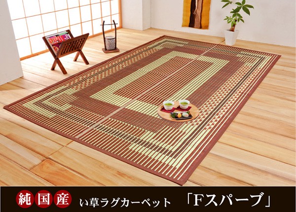 【商品名】純国産/日本製 い草ラグカーペット 『Fスパーブ』 ブラウン 約191×191cm(裏:ウレタン) 正方形
