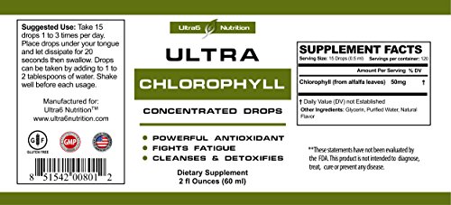 -. Feature : FIGHTS THE EFFECTS OF AGING - The Plant Pigment (Chlorophyll), taken in liquid form protects the body from ailments, detoxifies and cleanses the body including the liver. / IMPROVES DIGESTION AND HELPS WITH WEIGHT LOSS - Research has shown Chlorophyll to not only speed up waste elimination and balance fluid levels, but also help in overall weight loss. Chlorophyll taken in liquid form helps suppress hunger and give you a feeling of being full. / BETTER ABSORPTION - Our liquid Chlorophyll not only absorbs quicker, but also absorbs more efficiently than pills and capsules, giving you more benefits and results from the alfalfa leaves (source of Chlorophyll). / 100% MONEY BACK GUARANTEE (TRY RISK FREE) - Your satisfaction has no time limit and is 100 percent guaranteed. If you are not completely satisfied, return the Ultra Chlorophyll Drops to us for a full and prompt refund. / MADE IN USA AND FREE TELEPHONE SUPPORT - Our Ultra Chlorophyll Drops are made in the USA by an FDA Inspected and GMP Certified Facility. Free telephone support for questions and guidance with product usage or any other needs you may have.