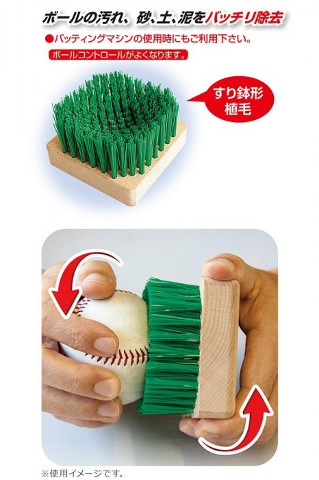 すり鉢型植毛で汚れをしっかり落とします。バッティングマシンの使用時にもご利用ください。