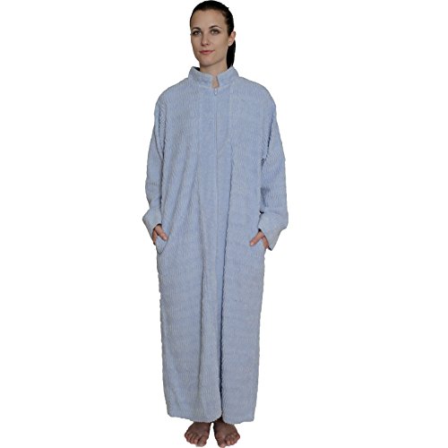NDK New York Women's Zipper Front Chenille Bathrobe 100% cotton Length 52 inches