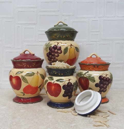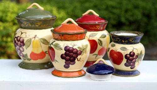 Tuscany Garden Colorful Hand Painted Mixed Fruit Canisters, Set of 4, 89201 by ACK