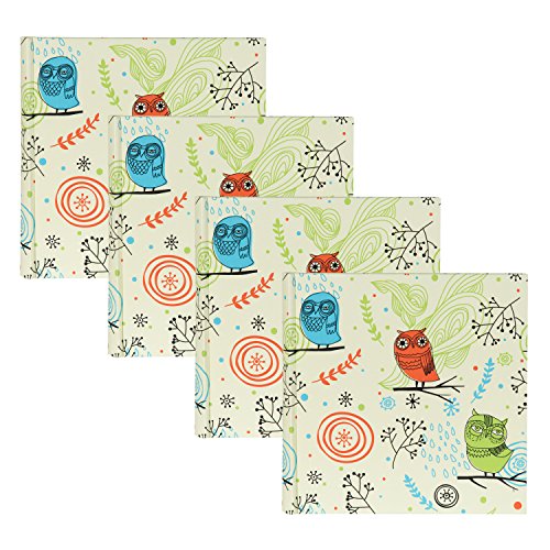 DesignOvation Hoot Owls Multicolored Photo Album, Holds 200 4x6 Photos, Set of 4