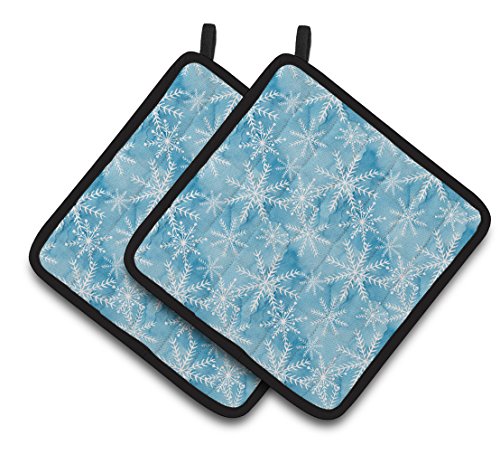 Caroline's Treasures BB7553PTHD Watercolor Snowflake on Blue Decorated Pot Holder, 7.5" x 7.5", Multicolor