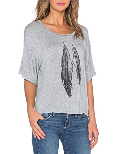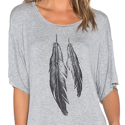 -. Binding : Apparel -. Brand : Romastory -. Department : womens -. Feature : Fashion Feather Pattern Print Design / Material: Cotton and Polyester, Soft and Comfortable / Great to Wear As Casual Street Style T-shirt , / Sizes:You May CHOOSE THE SIZE AS YOU USUALLY WEAR,IF NOT SURE ,PLS CHOOSE ONE SIZE UP / Romastory Owns Its Own Trademarks.The Serial Number:86805889. The Package Contains Romastory Tag. -. PackageQuantity : 1 -. ProductGroup : Apparel -. ProductTypeName : SHIRT -. Title : Romastory Womens Street Style Feather Pattern T-shirts Casual Loose Top Tee Shirts
