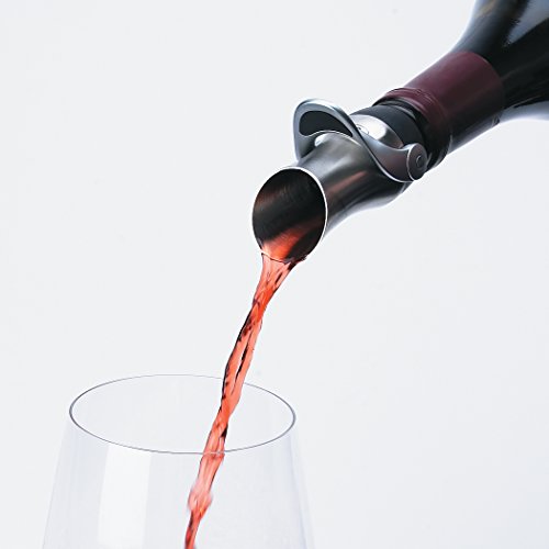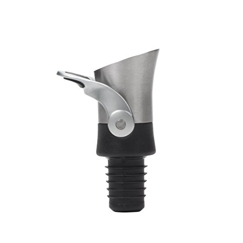 The OXO SteeL Wine Stopper/Pourer Combination is the perfect two-in-one gift for anyone from the wine connoisseur to the casual entertainer. Combining function and elegance, the sleek, brushed stainless steel Stopper/Pourer Combination reduces drips and spills while pouring and allows for even and consistent wine flow. Push the soft, comfortable lever down and the bottle is sealed for short-term storage. Lift the lever up and the seal is opened for drip-free pouring. Flexible ribs make the Stopper/Pourer Combination easy to remove from and place in to the bottle. The Stopper/Pourer Combination accommodates all size wine bottles and is dishwasher safe.
