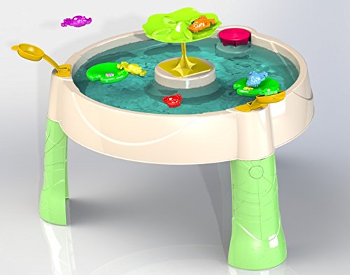 -. Binding : Toy -. Brand : Little Tikes -. EAN : 0050743643972 -. Feature : Launch the frogs onto lily pads and center tower / Turn the spinner that powers the "lazy river" / Accessories include: five frogs; two floating lily pads; one fill cup / Holds seven gallons of water -. IsAdultProduct : 0 -. Label : MGA Entertainment -. Manufacturer : MGA Entertainment -. Model : 643972M -. MPN : 643972M -. PackageQuantity : 1 -. PartNumber : 643972M -. ProductGroup : Toy -. ProductTypeName : TOYS_AND_GAMES -. Publisher : MGA Entertainment -. Studio : MGA Entertainment -. Title : Little Tikes Frog Pond Water Table -. UPC : 050743643972 -. Warranty : 90 day warranty against manufacturer defects