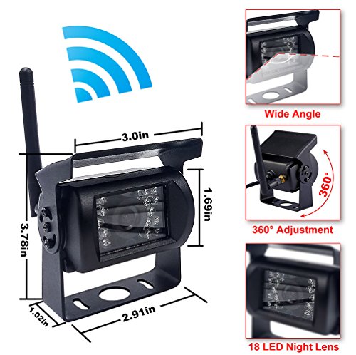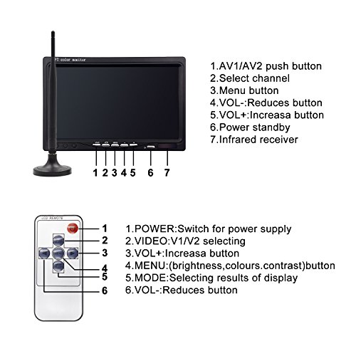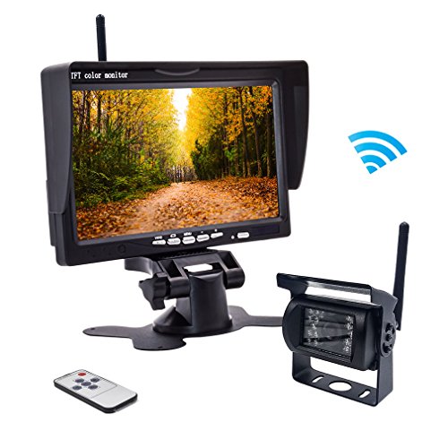 EASY TO INSTALL:Wireless parking assistance; 7-Inch TFT LCD Widescreen Monitor with Built-in Wireless Receiver-- High resolution image and full color display. Rearview IR Reverse Camera with Built-in Wireless Transmitter---with 18 individual Infrared (IR) LED for Night Vision. The monitor will start up automatically, and synchronously display the video from rear camera when you're backing your car.