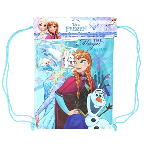 Product Description These awesome 3 piece gift sets include a drawstring backpack, a set of headphones, and a coin purse! They feature some of your favorite Disney characters such as Minnie Mouse from Mickey Mouse Clubhouse, and Queen Elsa and Princess Anna from Frozen! These girl's sets include a coin purse with a zipper closure. Your child can easily carry books, gym clothes, school supplies, snacks, and more with these cool cinch sack bags! This gift set is perfect for any Frozen or Minnie Mouse fan, and they make a great stocking stuffer for the holidays! Choose your favorite or collect them all! 0
