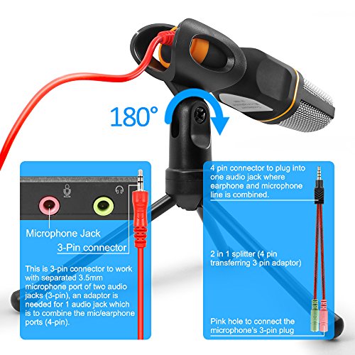 BROAD COMPATIBILITY - 3-pin 3.5mm stereo plug to suit most of PC and parts of notebook, a 4-pin transferring 3 pin 2 in 1 splitter is free given to apply to the newest notebooks and other device with 4-pin jack which is to combine the earphone and microphone.