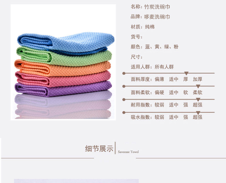 加厚吸水抹布不沾油3条装清洁布厨房洗碗巾擦碗毛巾