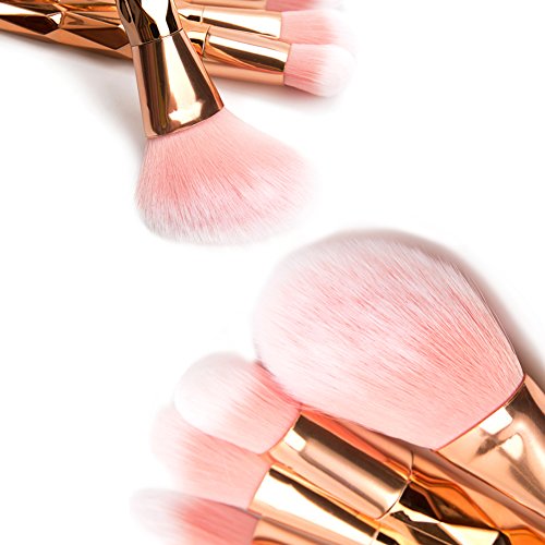 Makeup Brushes Set Rose Gold Tilted Cornered Handle 7pcs Women Essential Cosmetic Kit Blending Blush Foundation Contour Concealer Eyeliner...