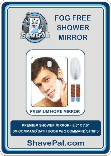 SHOWER MIRROR ~ PREMIUM FOG FREE SHOWER MIRROR ~ OUR LARGE FOGLESS SHOWER MIRROR FOR SHAVING ~ INCLUDES 3M* COMMAND* HOOK FOR BATH ~ WON'T FALL! ~ MOVEABLE! ~ NO DAMAGE TO SURFACES. TRUST 3M* TO HOLD IN THE SHOWER. BY SHAVE PAL