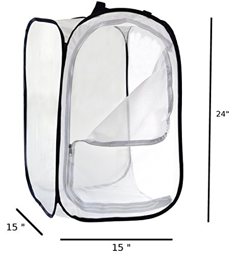 -. Feature : Illustrated guide (PDF) to raising butterflies will be e-mailed to you on the day you receive the habitat / Mesh on 5 sides promotes healthy air flow for Butterflies, Lady Bugs, Praying Mantises, and even some small animals / Large zipper opening and washable - 10% bleach to sanitize / Fine mesh will stop tiny ants, wasps, and other predator insects / Collapsible design allows terrarium to fold almost flat