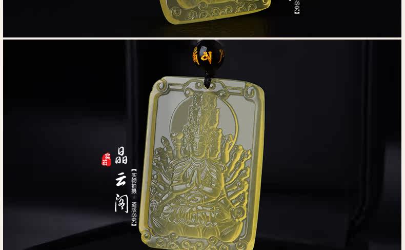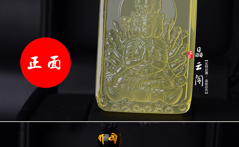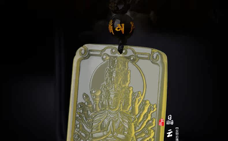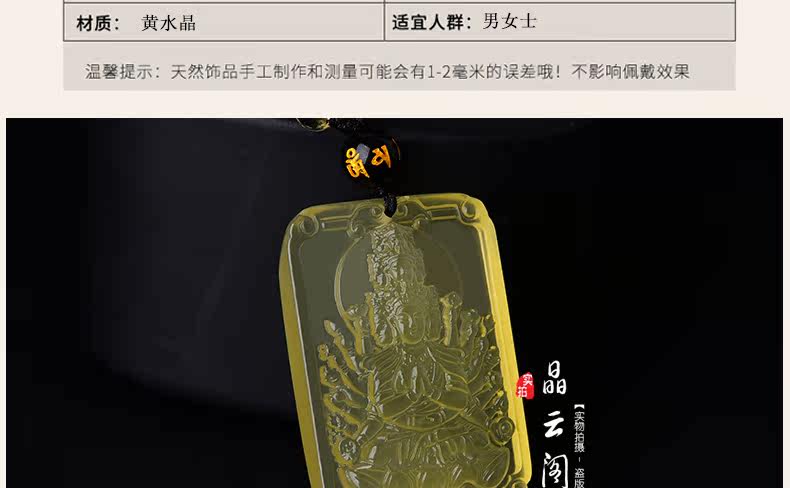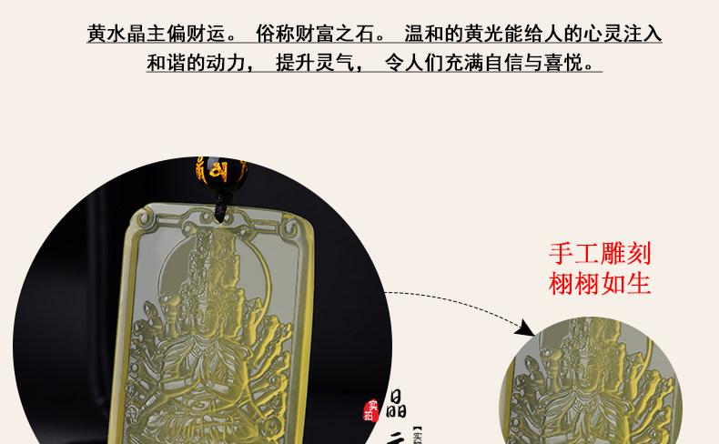 开光天然黄水晶千手观音吊坠 生肖属鼠本命佛项链情侣款饰品挂件