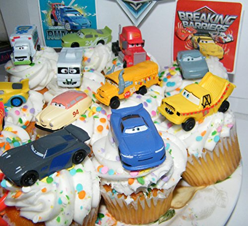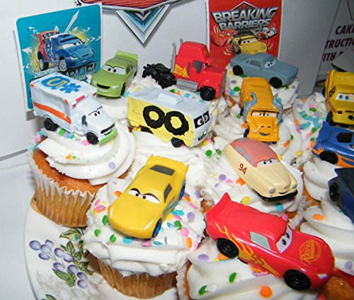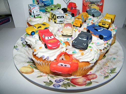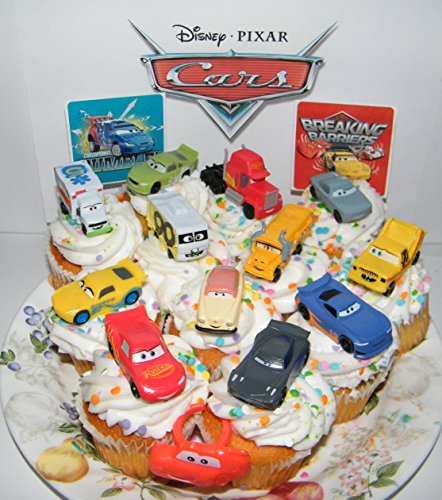 Disney Cars Movie Deluxe Cake Toppers Cupcake Decorations Set of 14 with Plastic Cars, a Sticker Sheet and ToyRing Featuring Lightning McQueen, Nash, Dr. Damage and More!