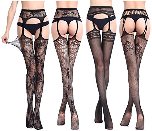 -. Title : QandSweet Womens Stockings Thigh High Sexy Fishnet Lace Suspender Pantyhose Stretchy 4-Pack