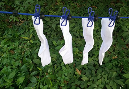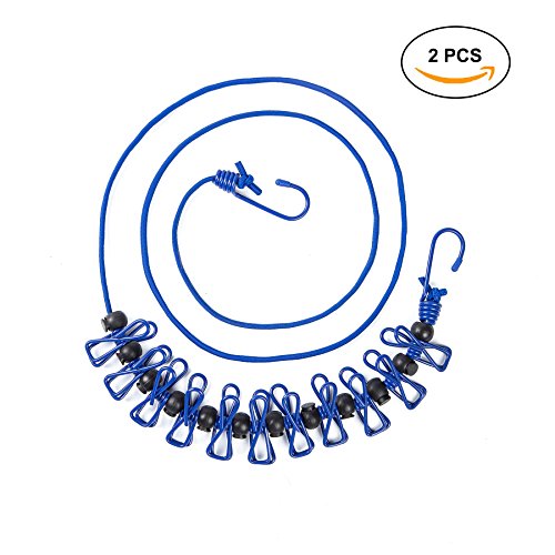 Studio : AimtoHome Publisher : AimtoHome Binding : Kitchen Product Description Features: 1. When we have traveling ,it is troublsome to find an apropriate device to dry clothes.Hotel prices for laundry is ridiculously expensive,buy one to solve the problem.It's very easy to install. The cord is stretchable and the steel hooks allow you attach your line almost anywhere that makes it easier to adjust to a more diverse range of distances between hanging points.Stretched up to 10 feet. No training is required, and installation is only a matter of minutes. 2.The clothesline is an Ingenious Creation with 12pcs clothespins for hanging towels, swim suits ,socks, underwear, bathing suits and any other lightweight clothes such as T-shirt. 3. Lightweight, portable and very sturdy. Only weighs 13 ounces making it highly portable for traveling and camping. This elastic clothesline came in handy to dry your clothes, You can position the little plastic stops equidistant across the line which separates the clips and keeps everything spaced for fast drying. Package: 2 x Clothesline 0