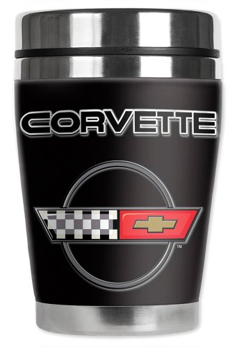Mugzie Corvette C4 Logo "Mini" Travel Mug with Insulated Wetsuit Cover, 12 oz, Black