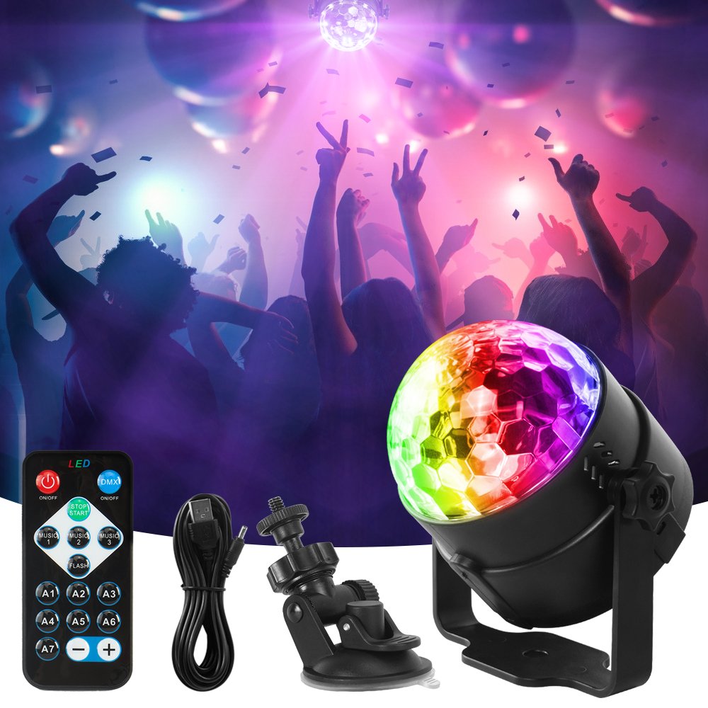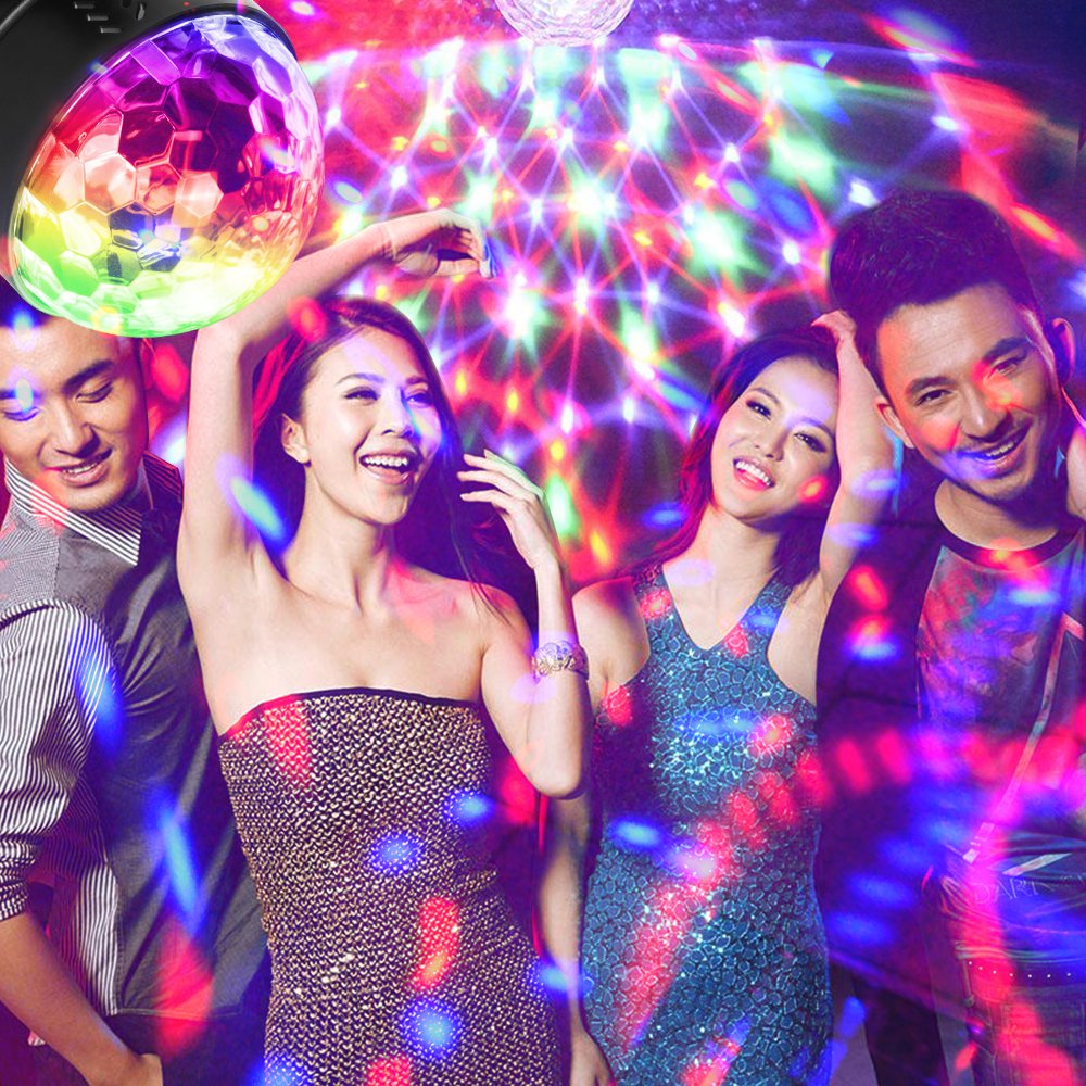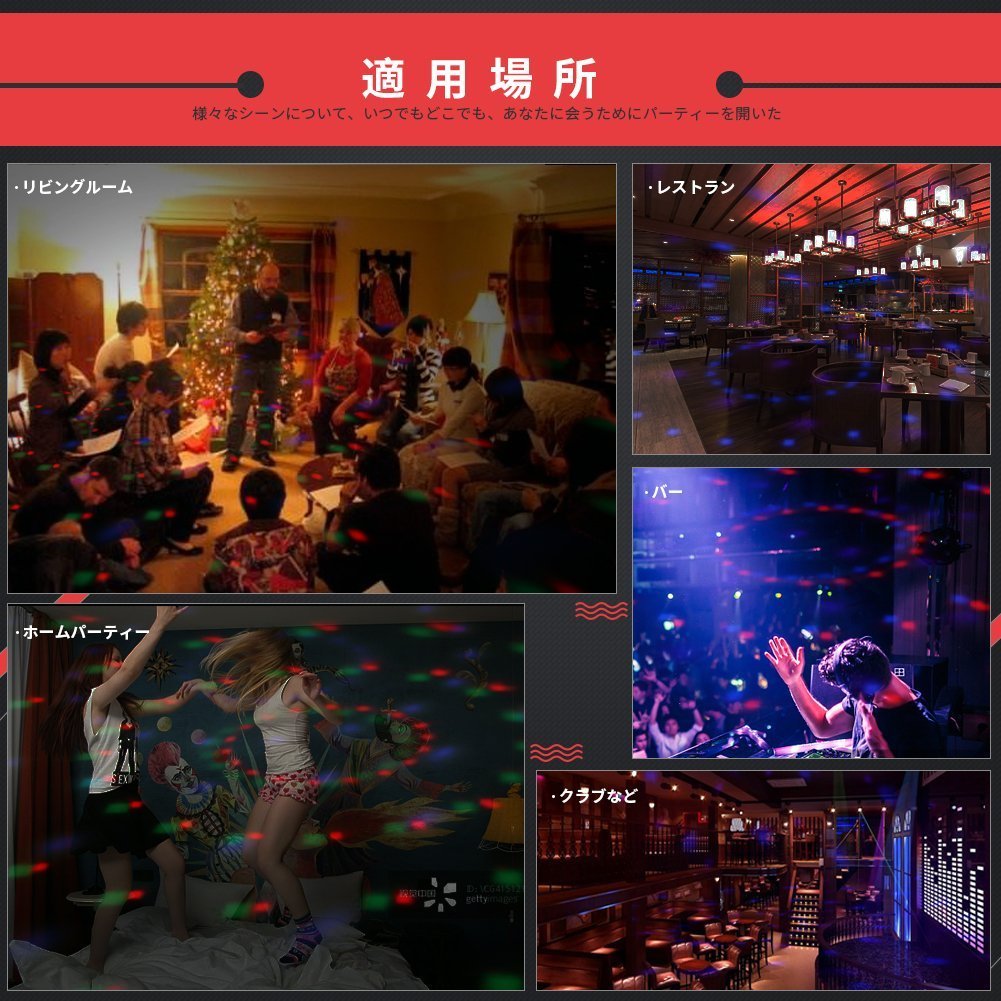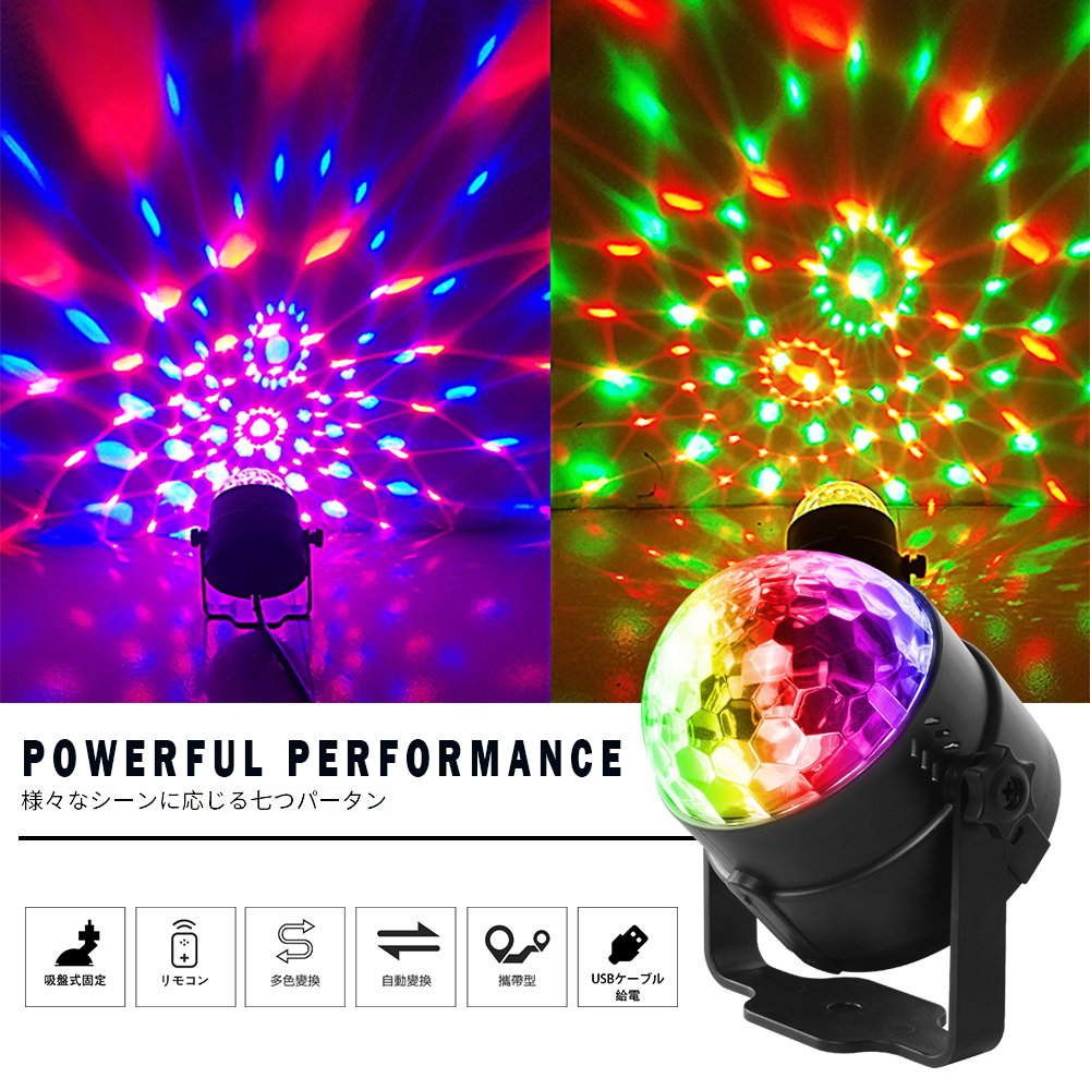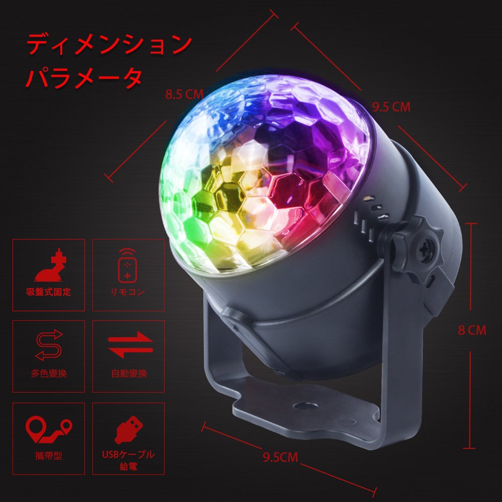 Combination of red, blue and green, while enjoying a pleasant stage light that the dome-shaped mirror diffuses beautifully while rotating.