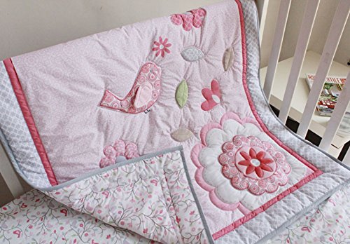 -. Title : New Baby Girls Happy Bird Pink 8pcs Crib Bedding Set with musical mobile