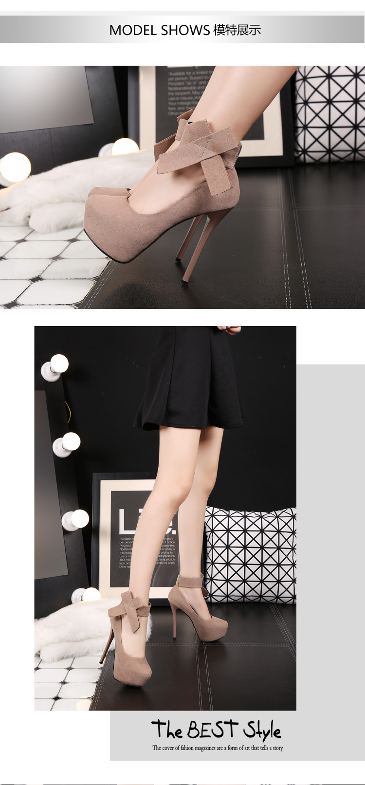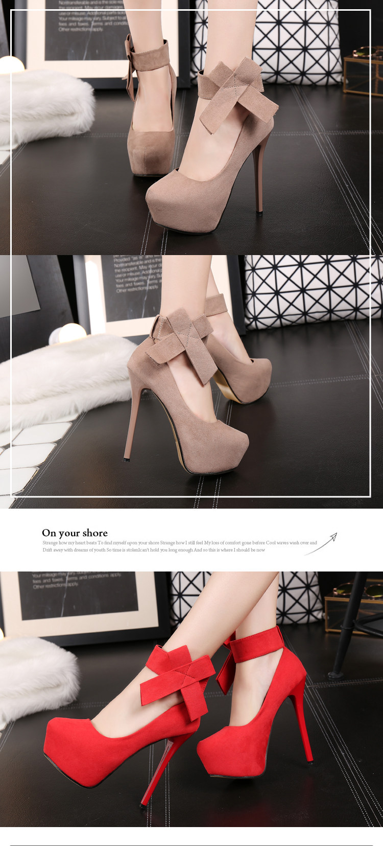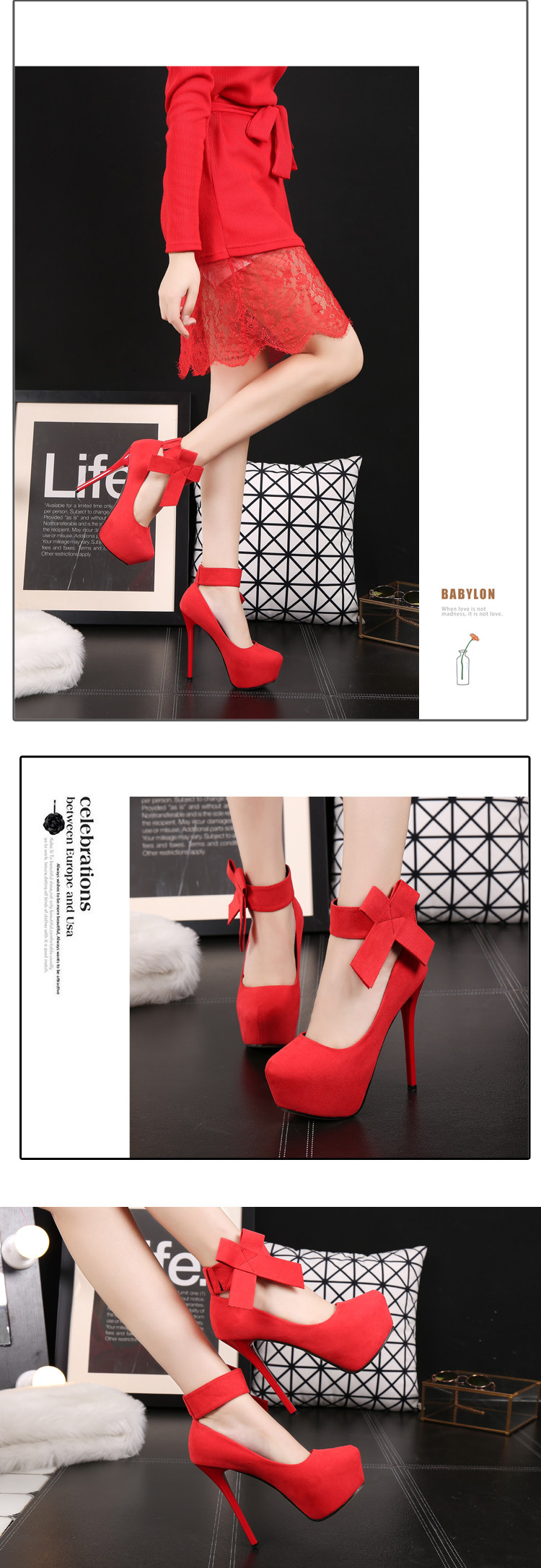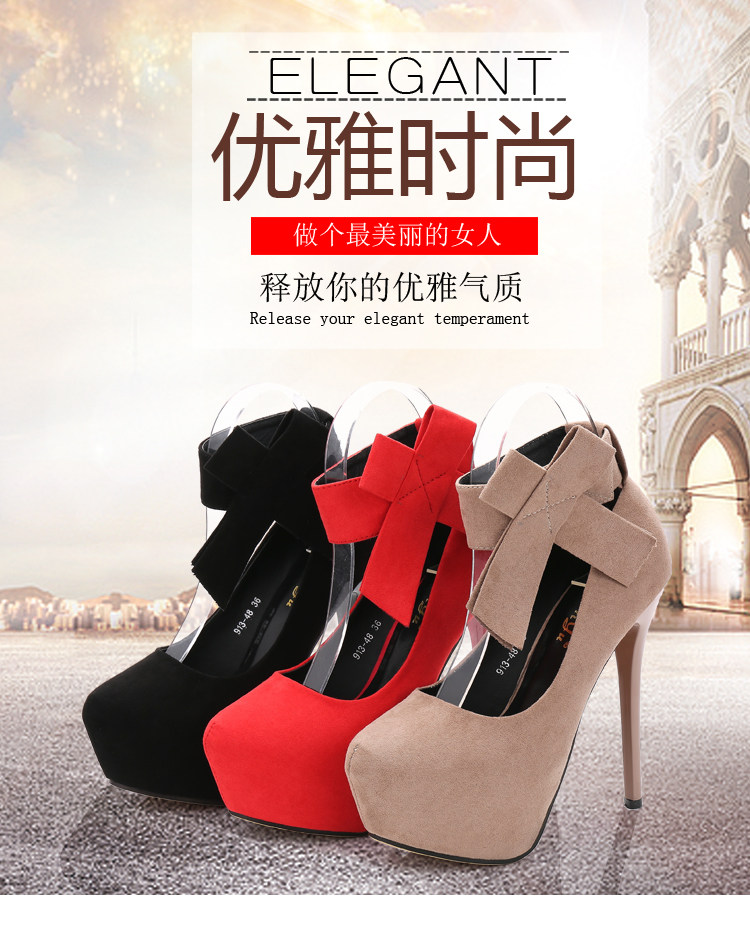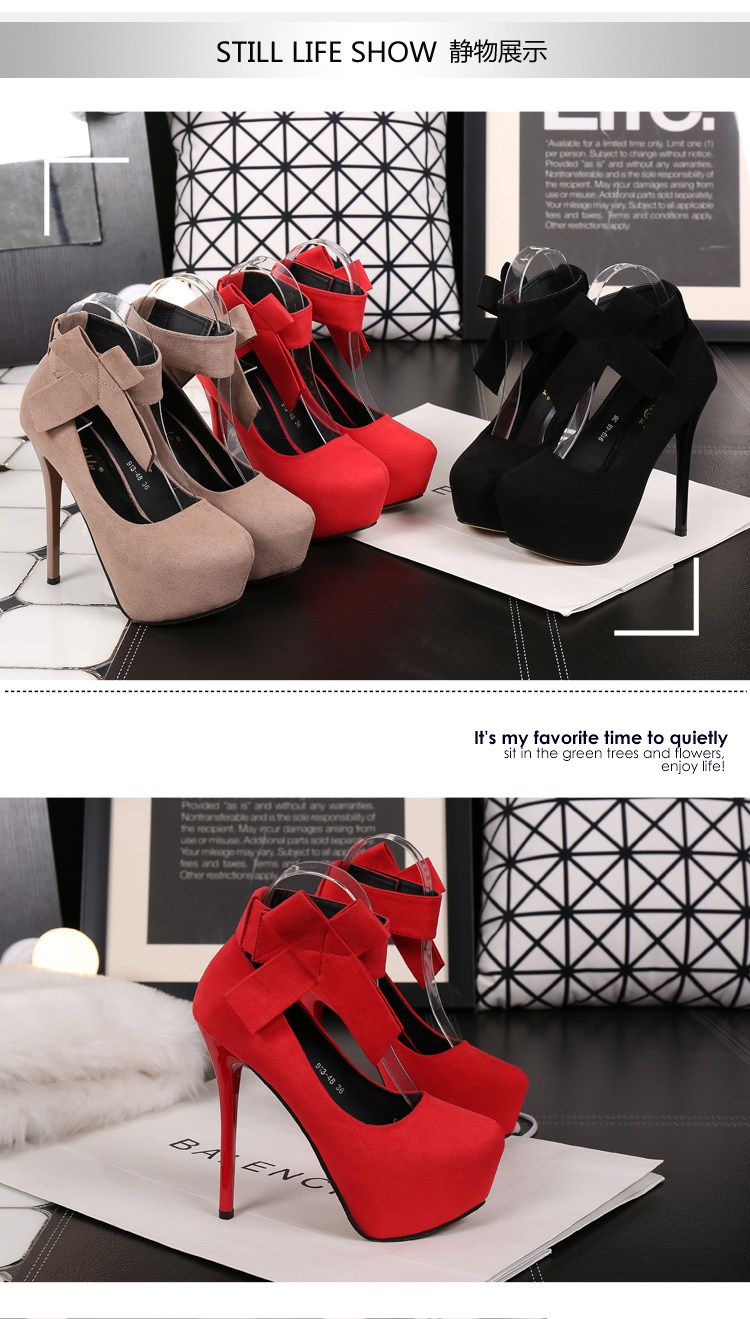 一字带高跟鞋秋季女细跟14cm圆头单鞋百搭车模红色婚鞋子