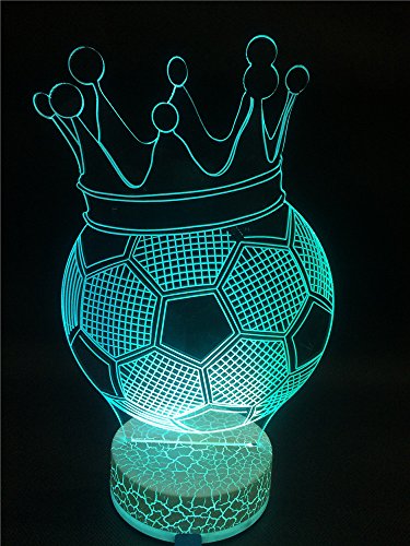 3D Optical Illusion LED Night Light Lamp Crown Soccer By AZALCO