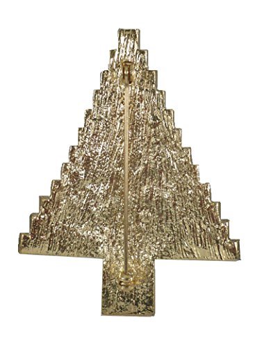 Merry, merry! This large (2 1/4 inches long, 1 3/4 inches wide) Christmas tree pin brooch puts you in the holiday spirit just looking at it. Pin back with safety C clasp. Goldtone. Made in China. Not for children age 12 and under.Feature