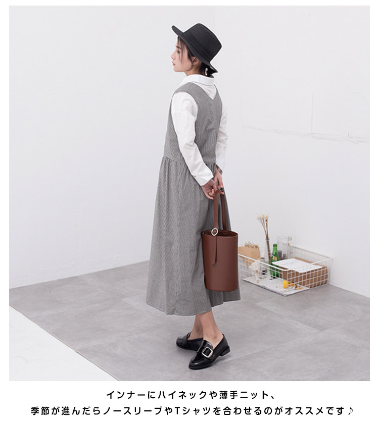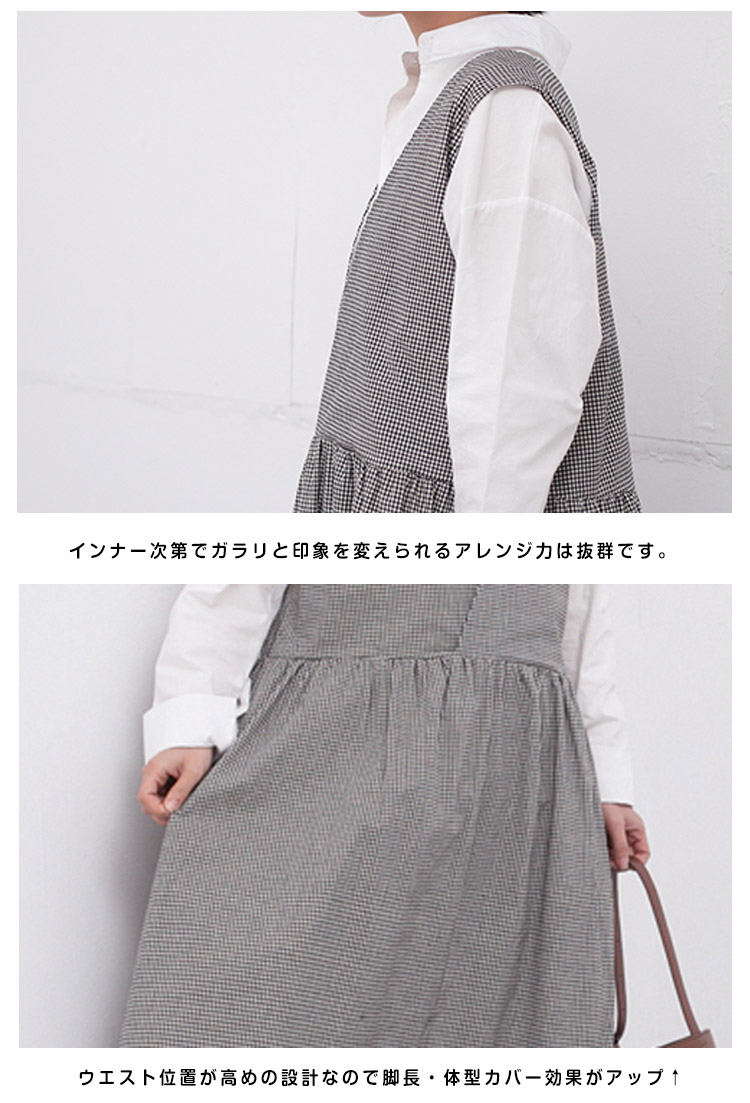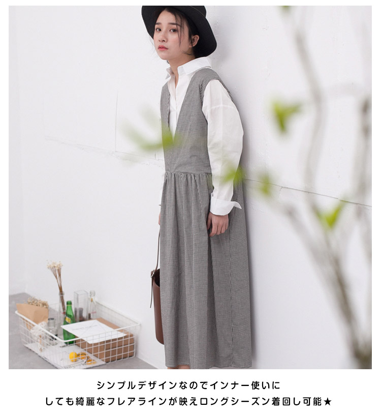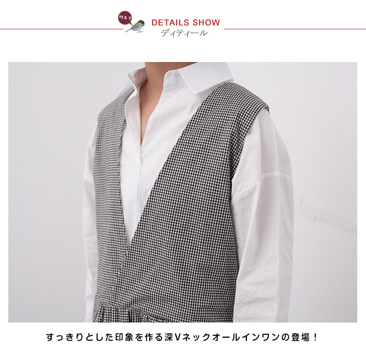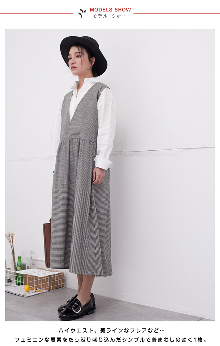 | 深めのVラインがトレンド感バツグン!!ハイウエスト、美ラインなフレアなど…フェミニンな要素をたっぷり盛り込んだシンプルで着まわしの効く1枚。インナーにハイネックや薄手ニット、季節が進んだらノースリーブやTシャツを合わせるのがオススメです♪ | |