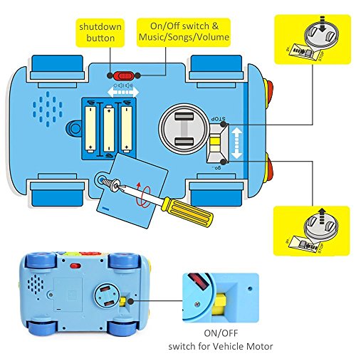 -. Feature : Language Development: Bus teaching voice can stimulate baby's language development, and help baby to acquire more vocabulary; Social Development: The game can strengthen baby's communicative ability, find correct blocks by adult instruction, corresponding shape blocks of the animal's name, and the completion of game cooperation can improve baby's ability to communicate and cooperate with other people, and improve baby's social skills. / Six 3D animal puzzles paired with embedded shaped slots, every successful embedding will reward your baby the corresponding animal voice, which encourages your baby to grasp, embed and others fine motor skills / Music button with 8 familiar nursery rhymes and 1 song matching up the bus image. Dynamic music and vivid lyrics help stimulate the baby's language development; Educational key and door help the baby exercise dig, twist, grab, embed, hold and other fine motor skills and cultivate the baby's spatial sense / Lifting caster makes this electric bus also a hand push toy, it develops the baby's hand-eye coordination, crawling, chasing and other gross motor skills; Waggling animal driver and flashing lights make the bus driving more dynamic and more realistic. / Gross Motor Development: With universal functions and happy music, let baby to chase the bus, exercise baby's leg large muscle groups, and stimulate body's sense of balance; Cognitive Development: Block colors, shapes, animal names, and corresponding animal sounds by embedding blocks can improve baby's cognitive abilities; Fine Motor Development: By holding, or embedding things to improve baby's hand-eye coordination, coordination ability, and stimulate baby's development of small muscle groups.