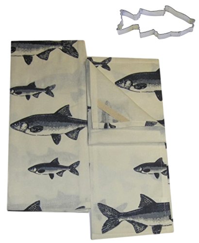 - Blue Gray Fish on White Cotton Dish Towels with Cookie Cutter Kitchen Set Bundle (3 Items) Includes: