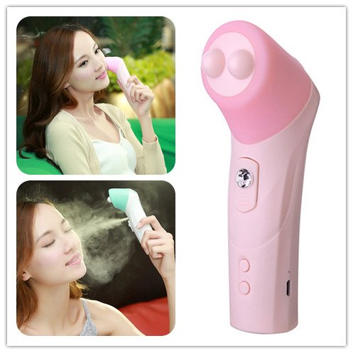 Nano Handy 2-in-1 Multi-Functional Facial Steamer, Flexible Vibrating Massager, Handy Mist Sprayer, Portable USB Rechargeable Face Beauty Instrument (Pink)
