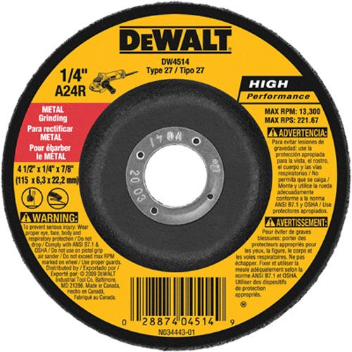 DEWALT DW4514B5 4-1/2-Inch by 1/4-Inch by 7/8-Inch Metal Grinding Wheel (5-Pack)