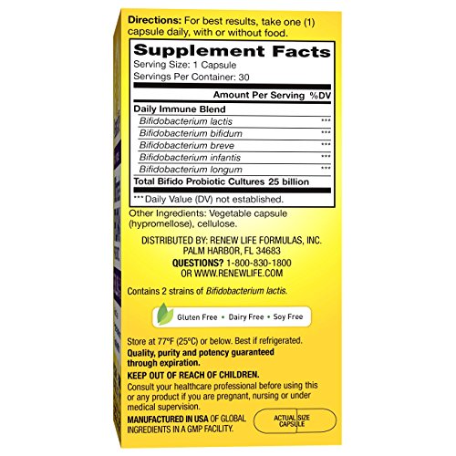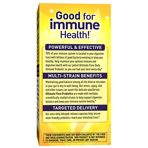 Ultimate Flora™ Daily Immune Probiotic contains 6 clinically studied strains of Bifidobacteria that provide powerful immune and digestive support in active adults and seniors. With 25 billion live cultures per capsule, it also supports respiratory health and enhances seasonal defenses by strengthening your body’s primary immune responses when you need it most. These statements have not been evaluated by the Food and Drug Administration. This product is not intended to diagnose, treat, cure, or prevent any disease.