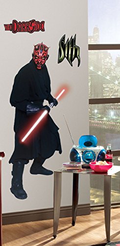 -. Binding : Tools & Home Improvement -. Brand : RoomMates -. Color : Black -. Department : Home -. EAN : 0634894715346 -. Feature : Assembled size - 24.25" wide x 60.25" high / Easy to apply - just peel and stick / Applies to any smooth surface / Decals are removable and repositionable with no sticky residue / Wall Decals made in the USA -. Label : York Wallcoverings -. Manufacturer : York Wallcoverings -. Model : RMK1845GM -. MPN : RMK1845GM -. NumberOfItems : 1 -. PackageQuantity : 1 -. PartNumber : RMK1845GM -. ProductGroup : Home Improvement -. ProductTypeName : BUILDING_MATERIAL -. Publisher : York Wallcoverings -. Size : Standard -. Studio : York Wallcoverings -. Title : RoomMates RMK1845GM Star Wars Episodes 1 thru 3 Darth Maul Peel and Stick Giant Wall Decal -. UPC : 034878680316