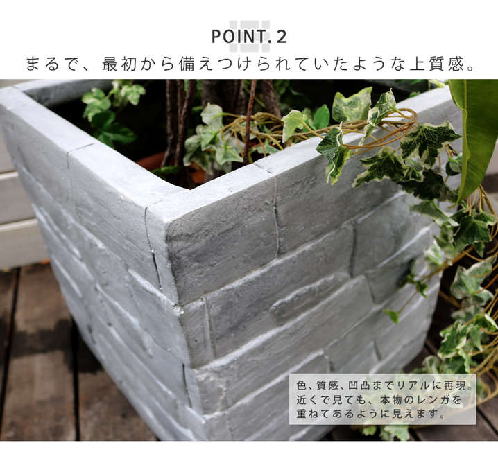 ●「本物そっくり!」と話題のレンガ調プランターから、歴史を感じるアンティークグレーの登場です