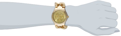 -. Feature : Multifunction features include day, date, and GMT (24 hour) sub dials / Gold-tone case and twist chain link bracelet / Luminescent hands and hour markers / Precise quartz multifunction movement / Water-resistant to 10 M (33 feet) / Multifunction features include day, date, and GMT (24 hour) sub dials / Gold-tone case and twist chain link bracelet / Luminescent hands and hour markers / Precise quartz multifunction movement / Not water resistant