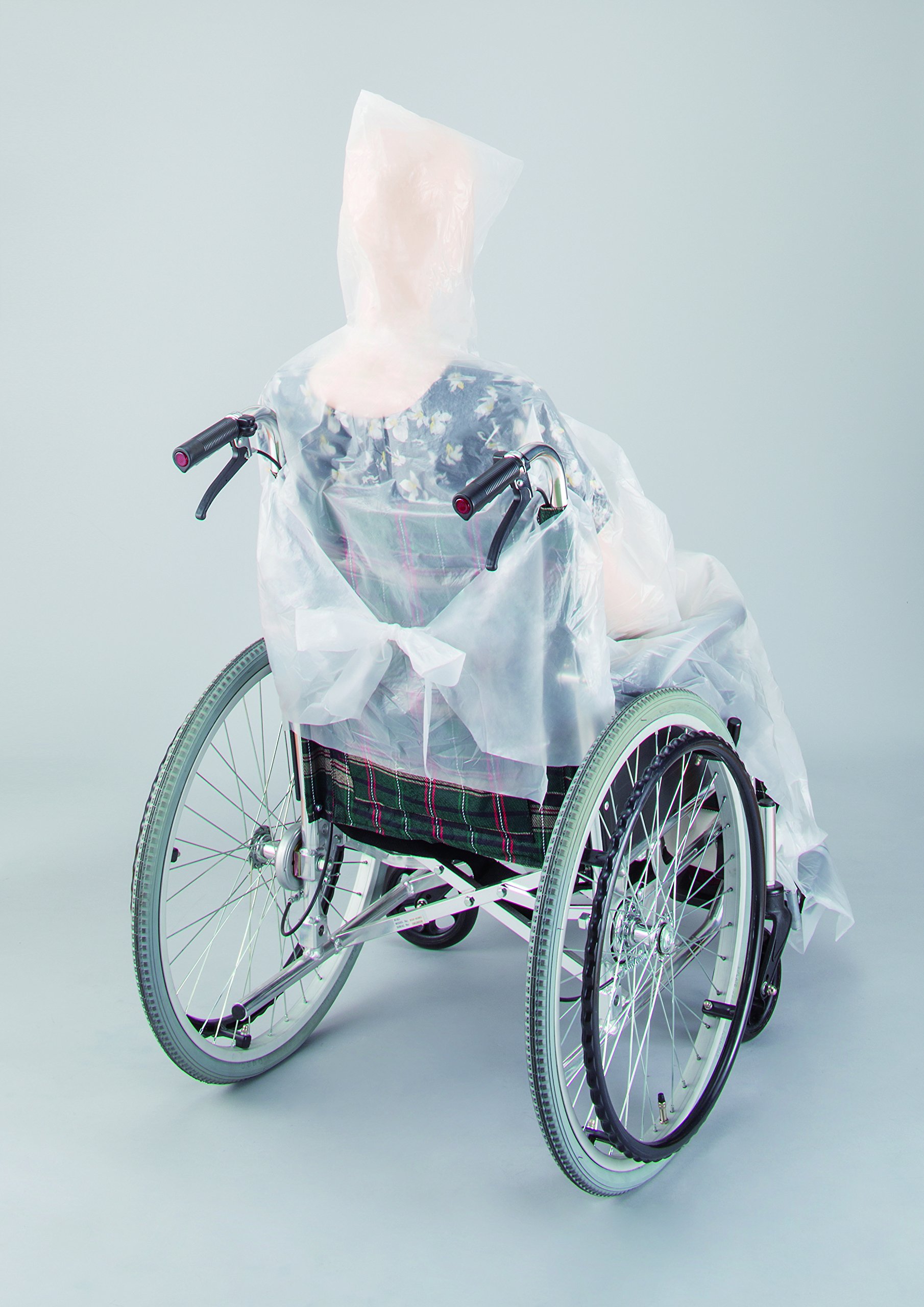 Pass the handle of the wheelchair through the slit on the back and tie the back strap