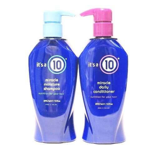 -. Binding : Health and Beauty -. Brand : It's a 10 -. Department : unisex -. EAN : 0885184046378 -. Feature : Shampoo and Conditioner combo helps to revitalize and moisturize your hair. A complete system of hair care especially designed to help hair look and feel thicker and healthier -. IsAdultProduct : 0 -. Label : It's a 10 -. Manufacturer : It's a 10 -. Model : Miracle Daily Shampoo and Conditioner -. MPN : 379999 -. NumberOfItems : 2 -. PackageQuantity : 1 -. PartNumber : 379999 -. ProductGroup : Beauty -. ProductTypeName : BEAUTY -. Publisher : It's a 10 -. Size : 10 oz -. Studio : It's a 10 -. Title : It's a 10 Miracle Daily 10 Oz. Shampoo and 10 Oz. Conditioner Combo Deal -. UPC : 741655254324