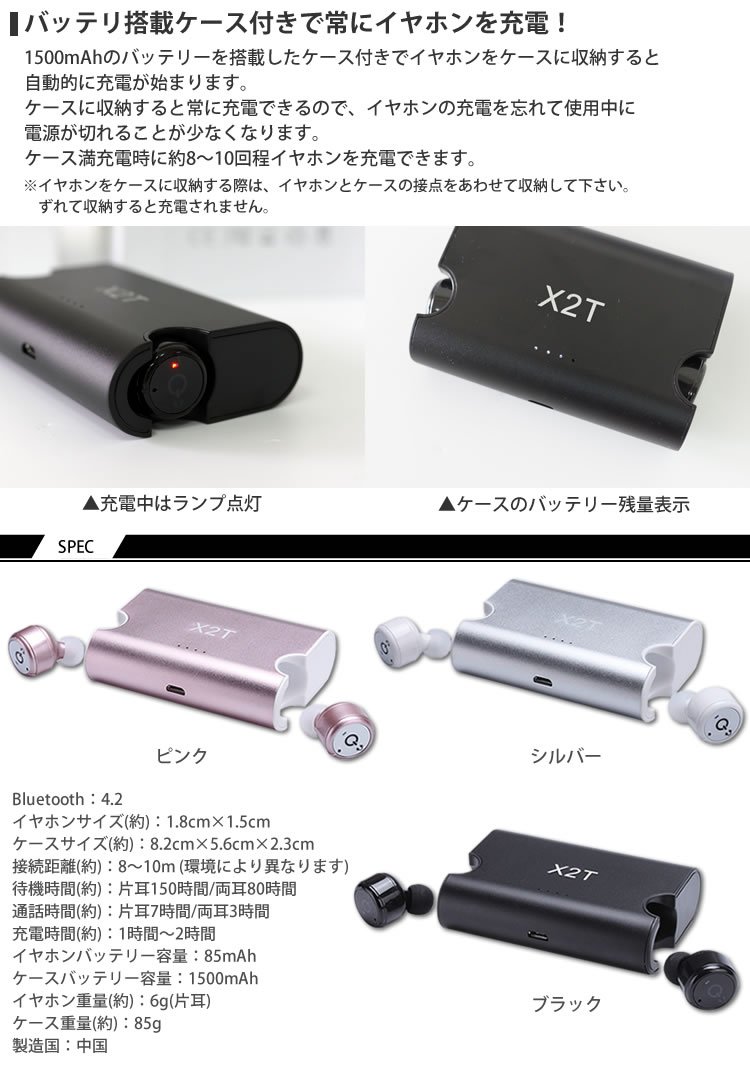 · Battery mounted case always charges earphone.
