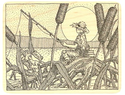 -. Title : {Single Count} Unique & Custom (4 1/2" by 3 1/2" Inches) "Backyard Creek, Night Sky & Boy Fishing" Rectangle Shaped Genuine Wood Mounted Rubber Inking Stamp