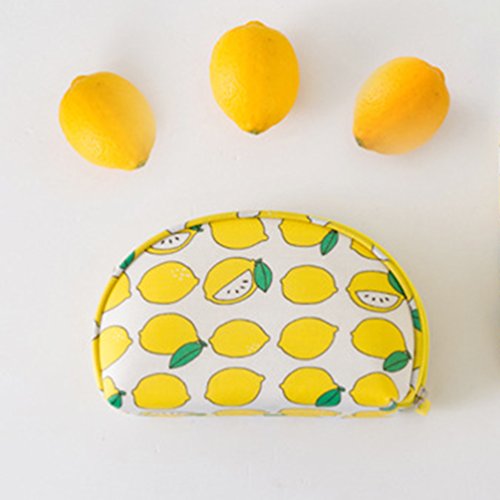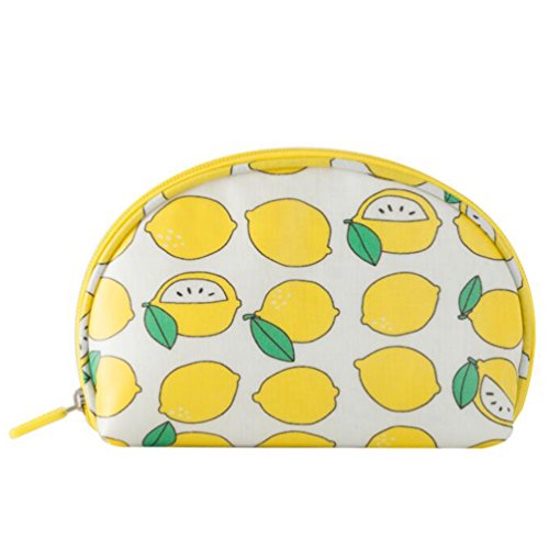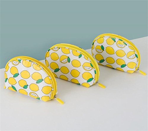 Half Moon Shell Shaped Waterproof Candy Color Floral Cosmetic Makeup Bag Travel Portable Handy Organizer Pouch (Yellow Lemon)
