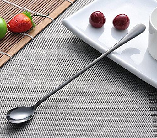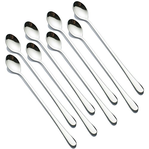 ZICOME 9 INCH LONG HANDLE STAINLESS STEEL STIRRING MIXING SPOONS FOR ICED TEA, ICE COFFEE, COCKTAIL, ICE CREAM, SET OF 8