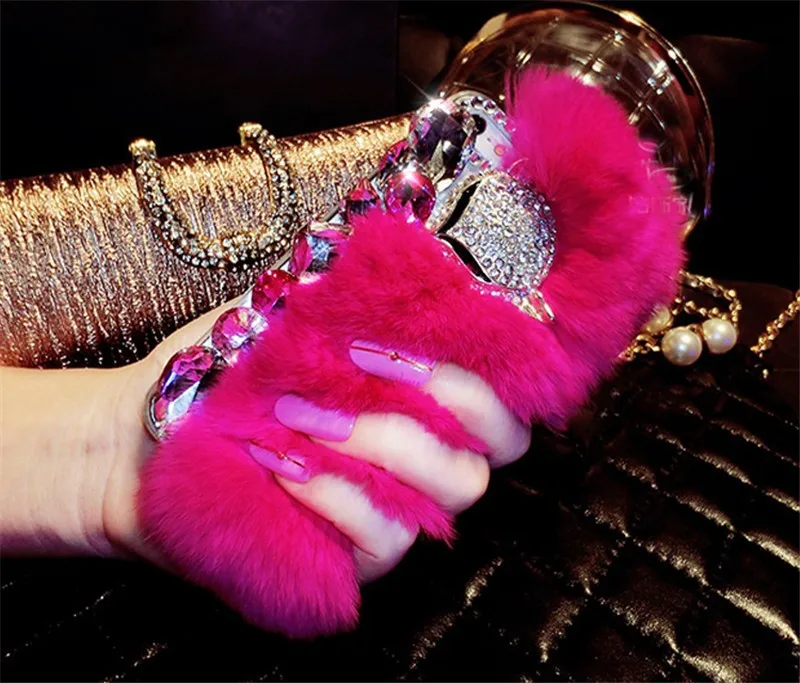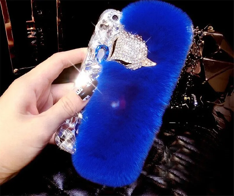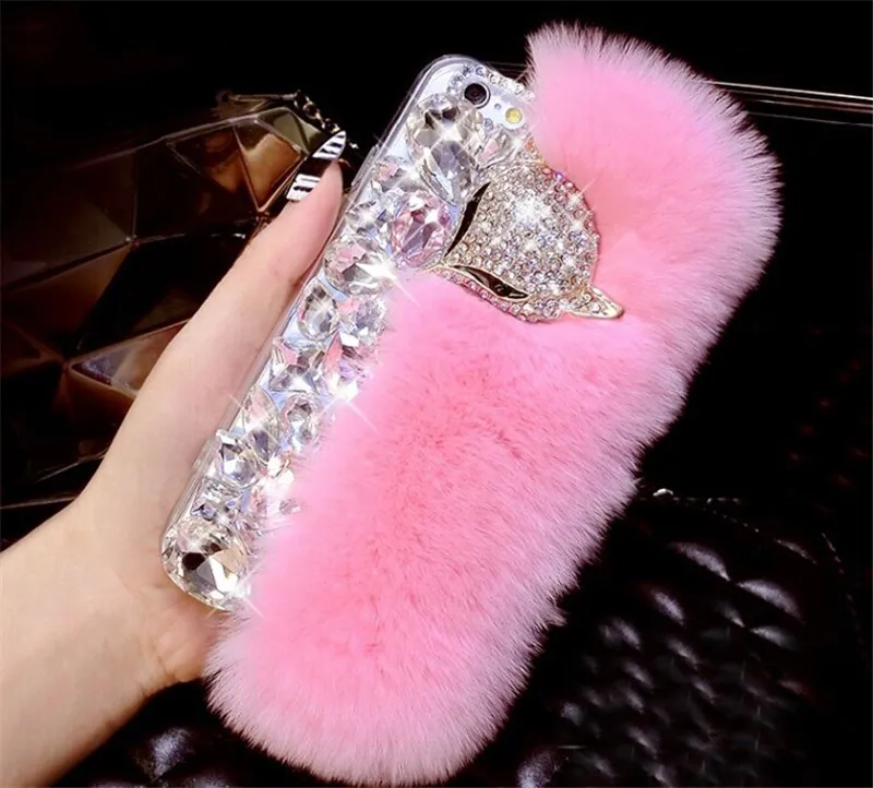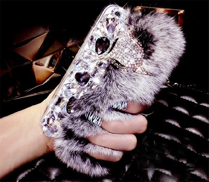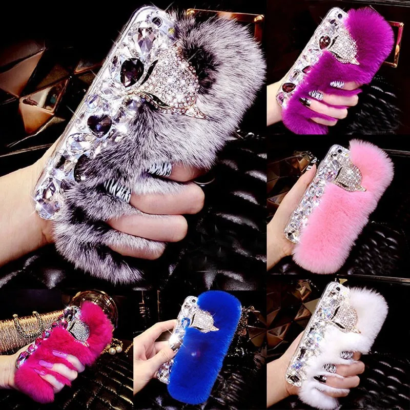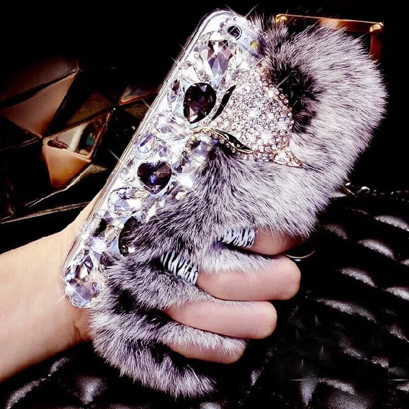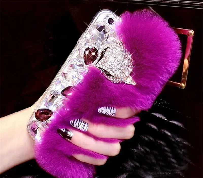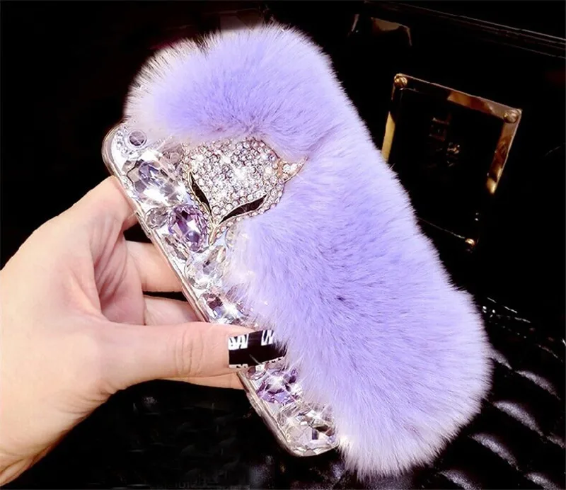 Features:rhinestone fox fur case