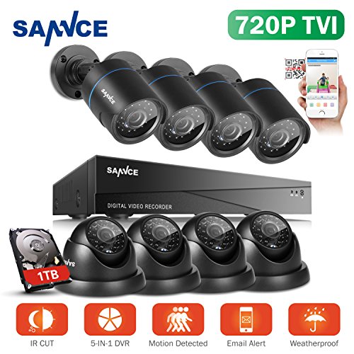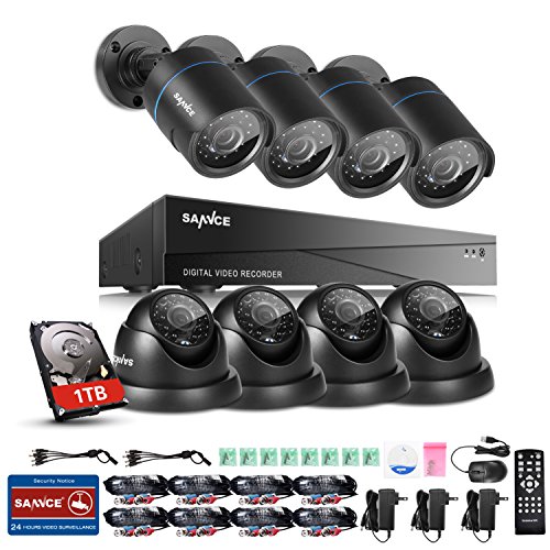 -. Binding : Electronics -. Brand : SANNCE -. Feature : Your World in 720P HD:Enjoy a heightened level of clarity and detail in your home and business surveillance with this 1080N DVR and 720P camera monitoring system and keep close eyes on your property with ease / Around-The-Clock Protection:Sleep assured knowing our video security system will be there for you throughout the night. Cameras equipped with premium IR LEDs are capable of producing up to 66ft clear night vision / Remote Access Anytime Anywhere:Get the viewing app by scanning the QR-code and get remote access to the surveillance footage anytime anywhere on your mobile devices as long as you're connected to the network / Smart Motion Detection:You can choose whole scree motion detection or customize your own detection regions, and all unexpected movements happened in those masked areas will be detected by the cameras / Instant Email Alarm Notification:Get alarmed in time by email when movements are detected by the cameras in your house or office. Be always in the know like you never left and get complete peace of mind -. Label : SANNCE -. Manufacturer : SANNCE -. MPN : SU-DG81CP1-14DR-14BG -. PackageQuantity : 1 -. PartNumber : SU-DG81CP1-14DR-14BG -. ProductGroup : Photography -. ProductTypeName : SURVEILANCE_SYSTEMS -. Publisher : SANNCE -. Studio : SANNCE -. Title : SANNCE 8-Channel HD 1080N Video Security System DVR Kit with 1TB Hard Drive and (8) 720P Bullet and Dome Cameras with IR Night Vision LEDs and IP66 Weatherproof Housing